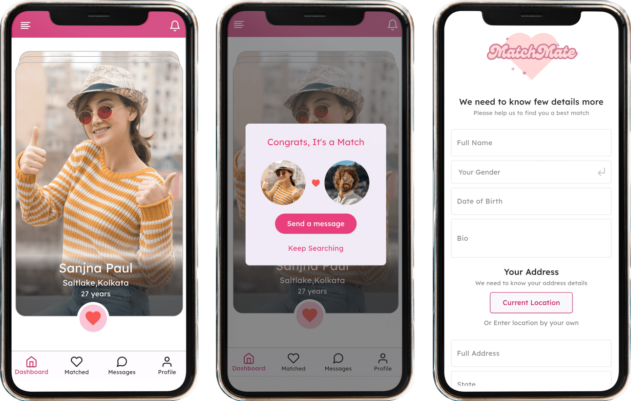 With Matchmate, we strive to provide users with a comfortable journey in finding a partner and making genuine connections. Similarly, we provide solutions based on your requirements. Whether it’s a techno-financial app, a delivery app, a lifestyle app or a social networking app, you name it and we will get it ready. For more references, check out some of our other highly-appreciated works.