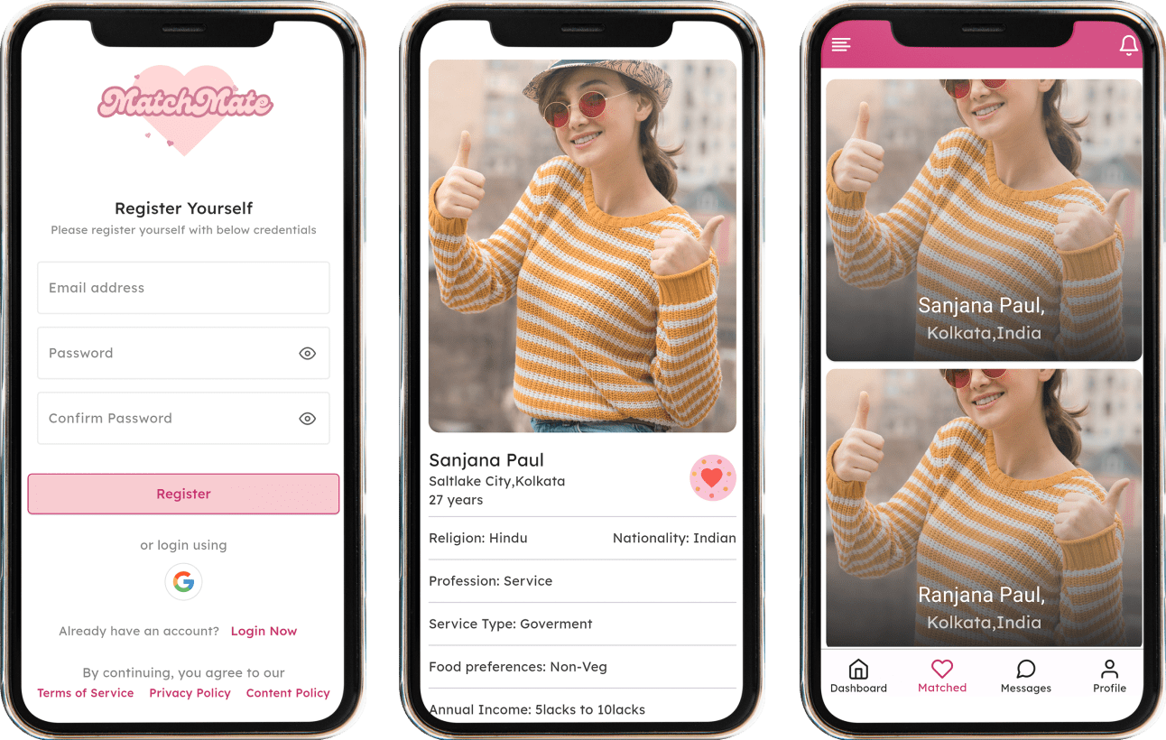 Matchmate is a very mobile-friendly application starting from screen size to user experience. The user experience incorporated in the mobile app is elegant and easy to comprehend. Apart from that, choosing the right technology, ensuring security and data protection and conducting market research as well as cost analysis has helped us build with success.